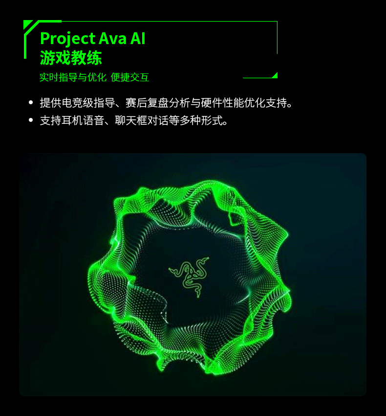 雷蛇宣称 Project AVA 在训练过程中汲取了顶尖电竞职业玩家和教练的游戏理解,可在 MOBA、FPS 类型游戏中给出实时指导,并在赛后给出个性化赛后总结分析,点出操作高光和需改进之处。